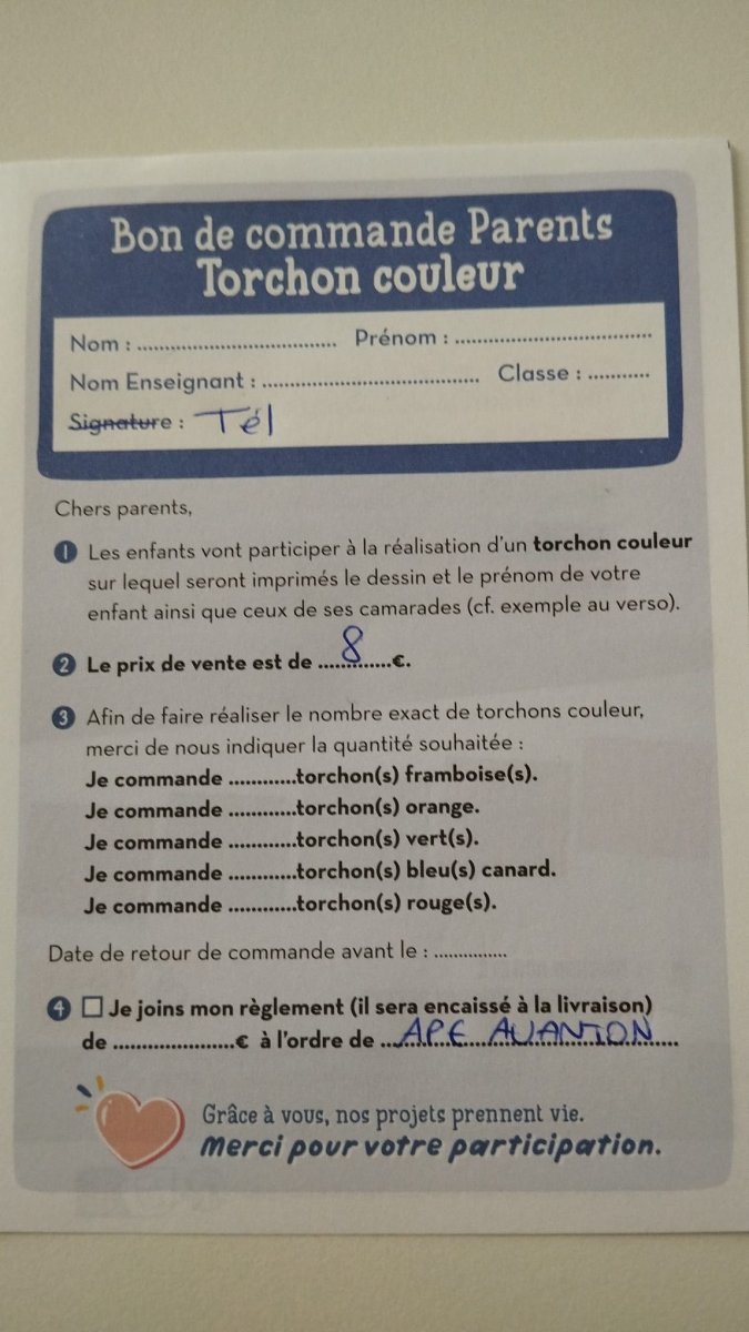 Votre commande sera disponible le vendredi 26 juin après-midi, lors de la kermesse de fin d’année.
